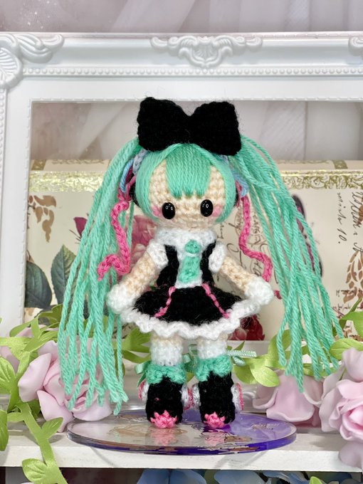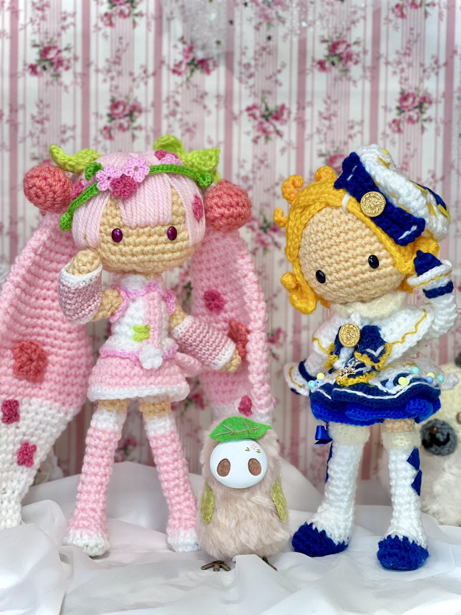 桜ミクさん🌸🌸爆誕したー!! 時計リンちゃんが可愛すぎるけど、桜ミクさんもかなり可愛くできたと思います✨✨ あみぐるみ始めてほんと楽しい💕 #あみぐるみ #桜ミク #初音ミク #黒MAJO