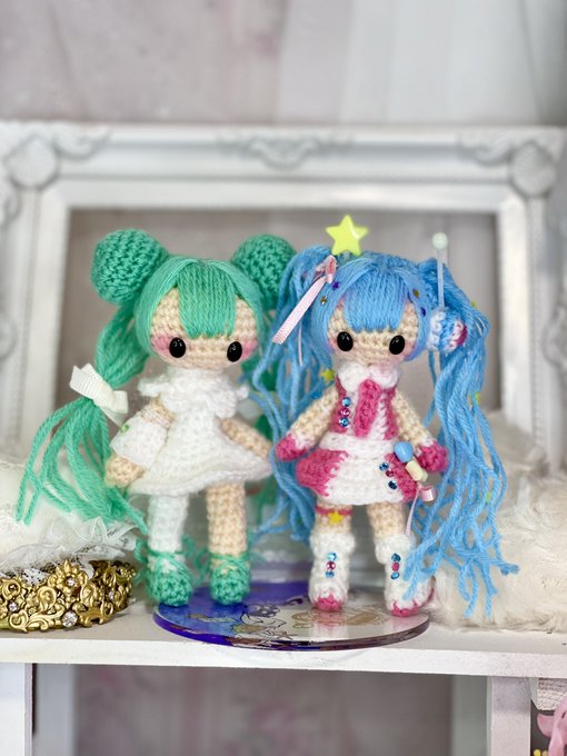 2 38 おはようございます❄️ 今日はBOOTHで晴れてネ🌈ミクさんの頒布となります💕 大体の大きさは、ミクさんと比べるとこんな感じでーす🌟 よろしくお願いします。 #テオ印 #あみぐるみ 22/05/19 07:03