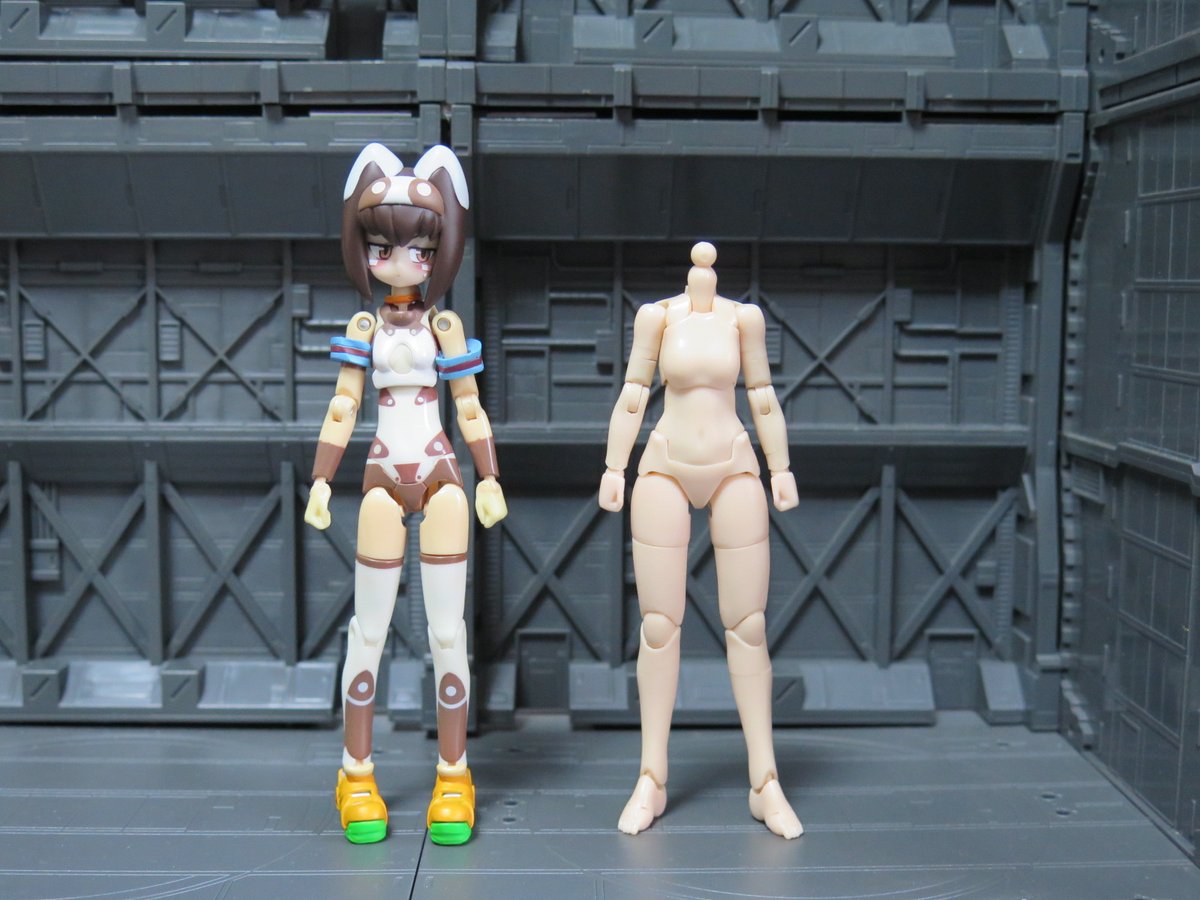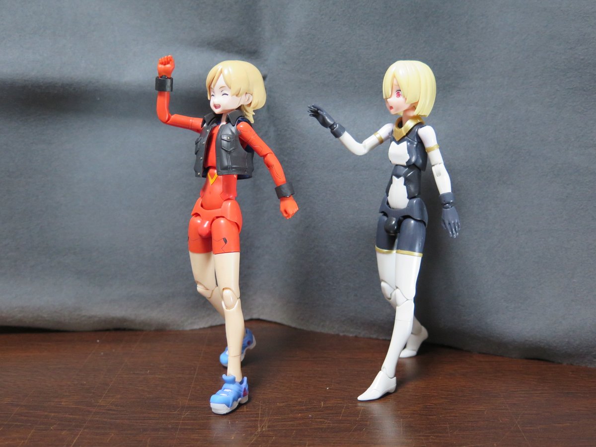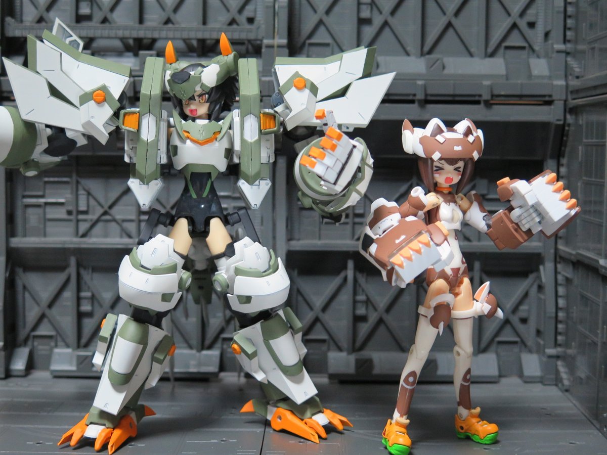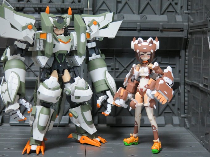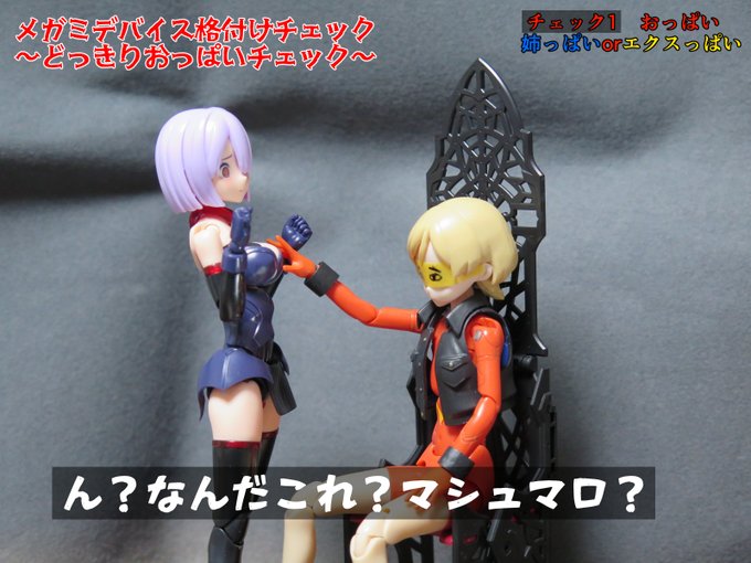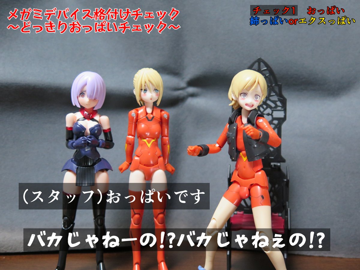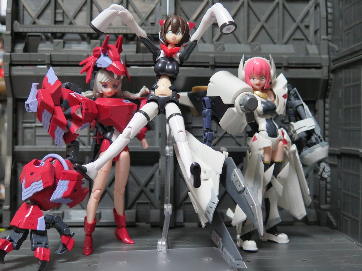 せっかくなので再掲 メ美肉メガミとデカ腕メガミとオトウトデバイスくんたち! #メガミデバイス #メガミ_G