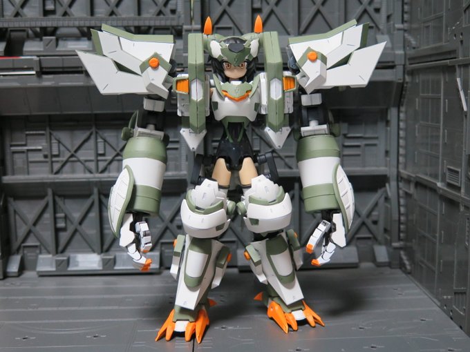 コトブキヤ:メガミデバイスコラボ武装神姫・アーンヴァルを15thカラーに塗りました デカールはバトルコンダクターのCGモデリングで再現されてる部分だけ貼りました かなり時間掛かったけど完成出来て良かった~!