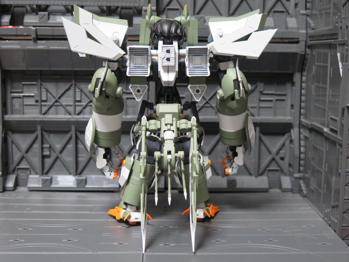 ダークアドヴェント:アイシスの旦那、ラブセス12世をニコイチして下半身アリの姿にしてみました 最初はアイシスに付属するパーツのみで組み上げるつもりでしたが、拘っていてはいつまでも完成しないなとMSGを使用 足首と背中にのみ使ってます 全盛の力を取り戻したラブセス12世、という設定です