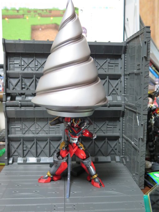 オフモールで購入した一番くじグレンラガンのA賞ギガドリル届いた~ 多分一番デカいギガドリルの立体物 グレンラガン本体は頭頂高で15cm程 ギガドリルはなんと22cm! 千値練のグレンラガン用に確保したんだけどまさかそれとほぼ同じ大きさとは… 満足感がすげぇや…