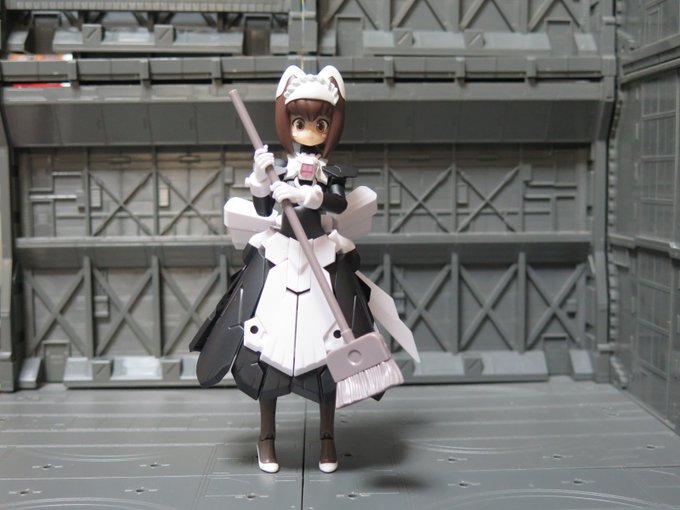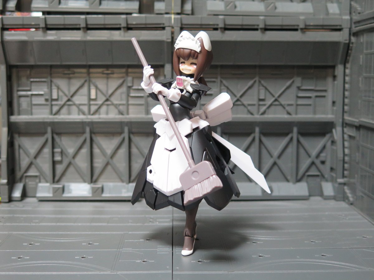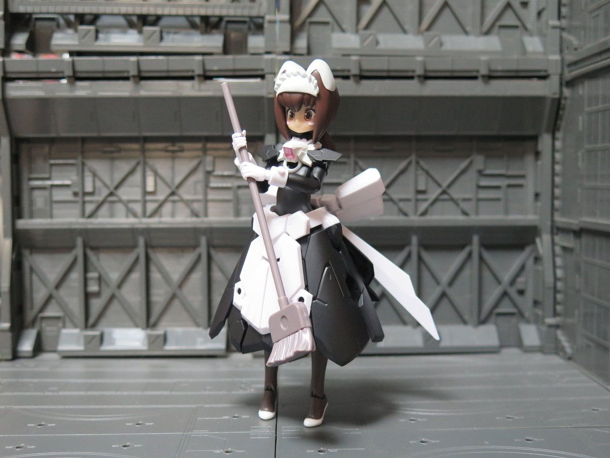 マジカルバーゼを塗装してウチのコメイドボディにしました 基本的に黒に塗装しただけ 足だけノーマルバーゼから持ってきてます 頭部の頭部のメイドブリムはパテで作成しました いい感じにメイドに見える…かな?