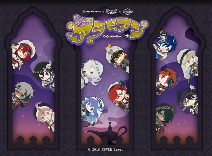 11月4日~20日開催「ホロスターズ&UPROAR!!×E-DINER コラボカフェ」のちびキャラをアラビアン衣装で描かせていただきました💫特設サイトにグッズ一覧も掲載されております。どうぞよろしくお願い致します。 ▼特設サイト edith.co.jp/lp/holostars-C…