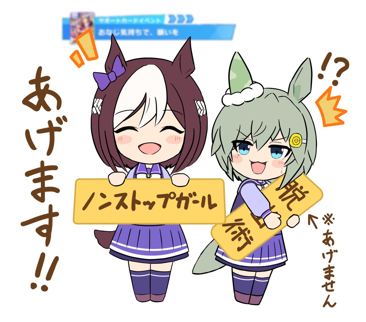 57 182 スぺちゃん「ノンストあげます!」 #ウマ娘 #イラスト #スペシャルウィーク #セイウンスカイ 22/12/31 11:54
