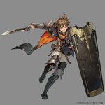 シン・クロニクルにて 「リオン(槌)」「ランフ(弓)」のイラスト制作を担当しました。 それぞれ最初のスタイルである槍リオン、槍ランフは全工程N.P.Aさんが担当されています! 自分は同じキャラデザインのまま、ポーズ案から仕上げまでと、武器デザインを担当しました 続いて↓