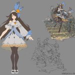 シン・クロニクルにて 「ウルナ」「ニレ」のデザイン・イラスト制作を担当しました ウルナは西方スタイルを持ちつつも精霊が好きそうな自然系…ほんわかした感じを意識して考えてました ニレはいわゆる男装の麗人という方向性がありつつ、自分としてはどう表現するかがチャレンジでした