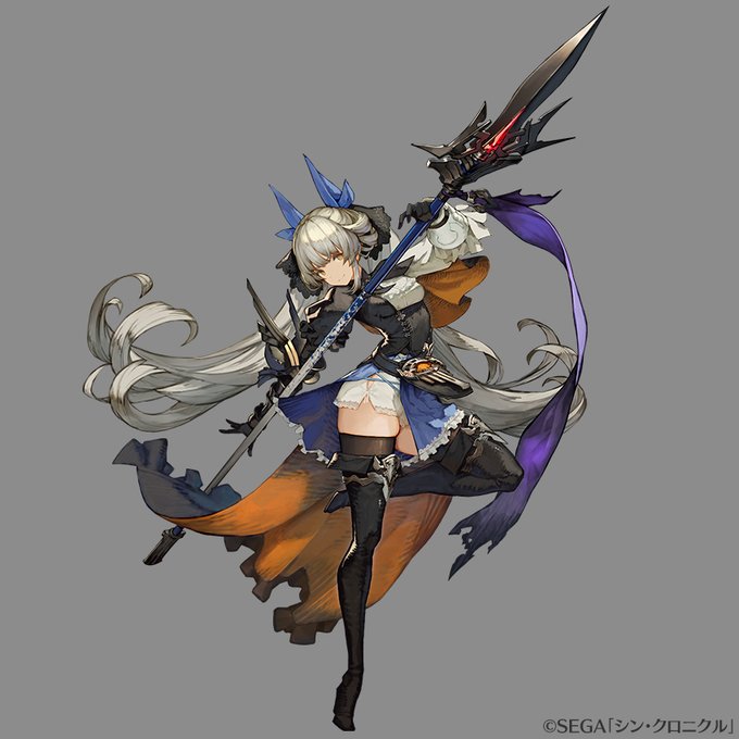 281 1720 シン・クロニクルにて 「デシティア」「デシティア(短剣)」のデザイン・イラスト制作を担当しました デシティアは個人的な制作時期初期メンで、キャラ性も相まってお気に入りの子のひとりです アナザーは珍しいオフの姿、アプリでは背景が入らなかったので、こちらで全体像をば…ミュトスもいるよ 23/05/30 18:00