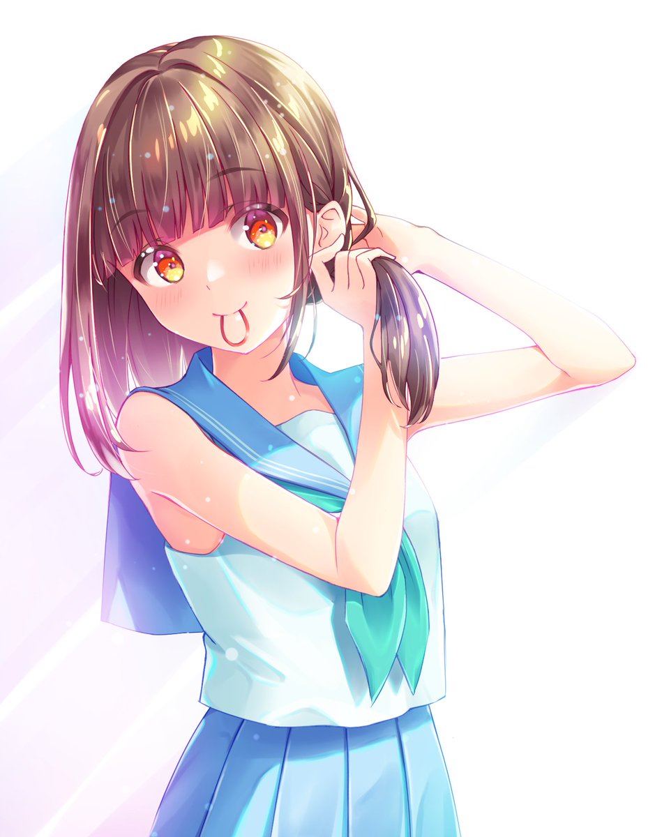 暑くなってきたのでノースリーブセーラーで出勤支度するはなざーさん。ボブとお下げの欲張りセット☺️ #花ねこイラスト