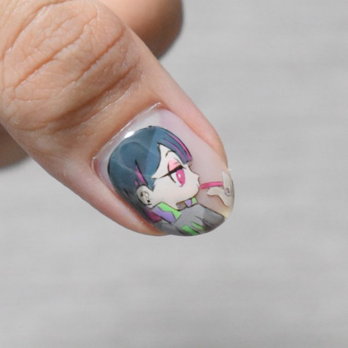 ずとまよグッズ再販ありがとうございます(*´꒳`*) 注文させて頂きました! 感謝を込めて、親指にニラちゃんネイルを作りました。ガンバッタ。 グッズ届くの楽しみです(°▽°) #ずっと真夜中でいいのに #ずとまよ #ずとまよファンアート