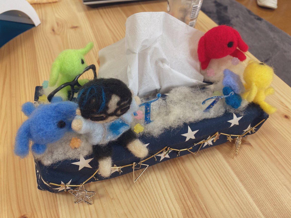 着々と出来てきているティッシュケース (まだブラックテラもん作れてない笑) #寺島拓篤 #テラもん #ハンドメイド #秘密基地 #羊毛フェルト