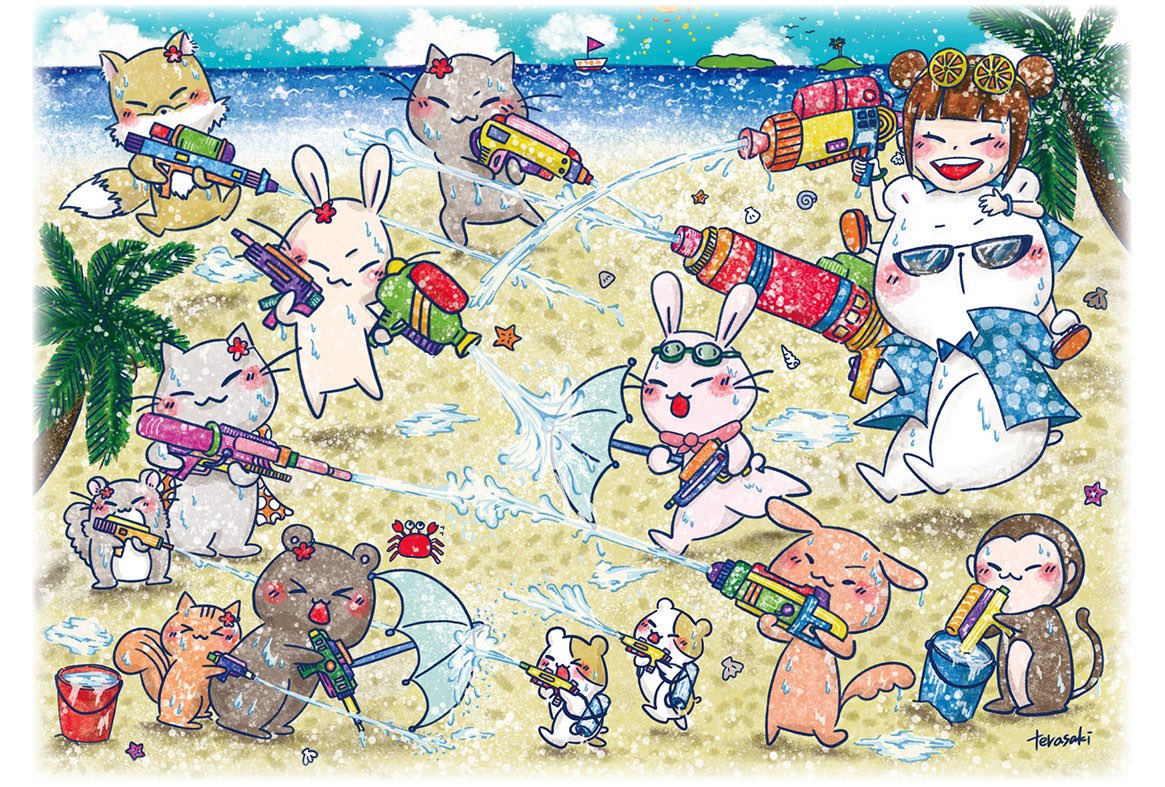 となりのくまさん《水鉄砲で遊ぼ!》 みんなで楽しく暑い暑い海で水鉄砲で遊びます たくさんあっちにこっちにかけまわります あっ!今だ!狙い撃ち! どっちのチームが勝つかな?? #となりのくまさん #絵描きさんと繋がりたい #イラスト好きな人と繋がりたい #terasaki #イラスト #海 #水鉄砲