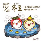 2022.12.22【冬至】1年で最も昼が短くなる日のこと 寒さが益々厳しいので風邪をひかないようにぽかぽか柚子湯はいかがですか? ゆずにゃんとうさりんも柚子湯に浸かって楽しくお風呂タイム どうぞお身体にご自愛くださいませ #絵描きさんと繋がりたい #イラスト好きな人と繋がりたい #イラスト #冬至