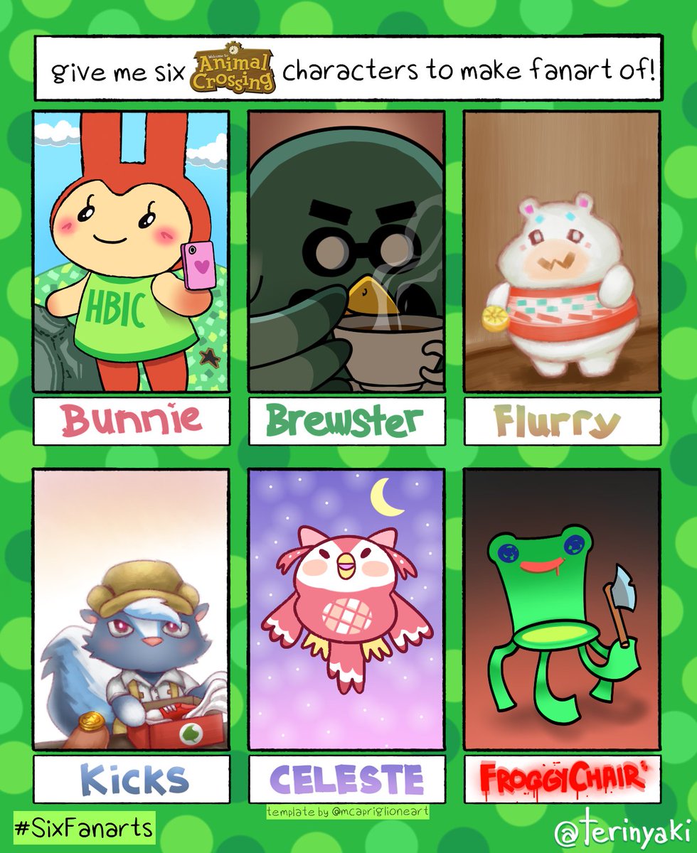as requested! tried to do a few different styles. #animalcrossing #acnh #art #bunnie #brewster #flurry #kicks #celeste #froggychair #sixfanarts #sixfanartchallenge