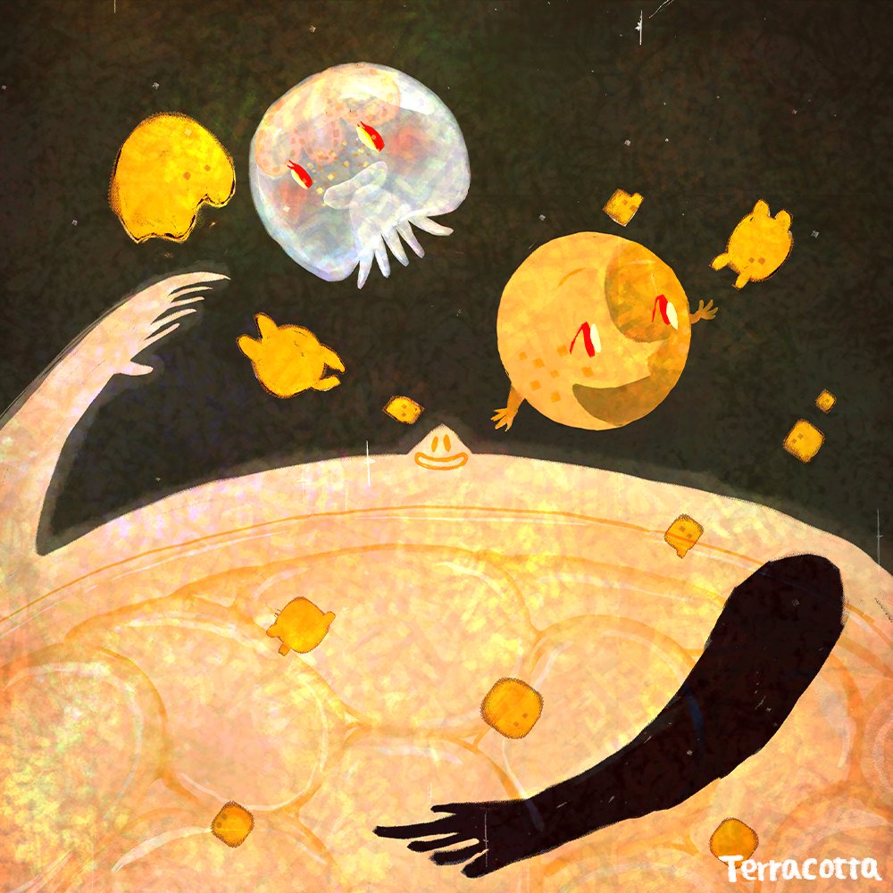 #100日チャレンジ 80日目! 今日は絵本のお気に入りページからちらり☺️ つきくんと皆が仲良く遊んでいるシーンです🌝💫 #イラスト #illustration #毎日投稿 #絵柄が好みっていう人にフォローされたい #イラスト練習中 #ゆるいイラスト