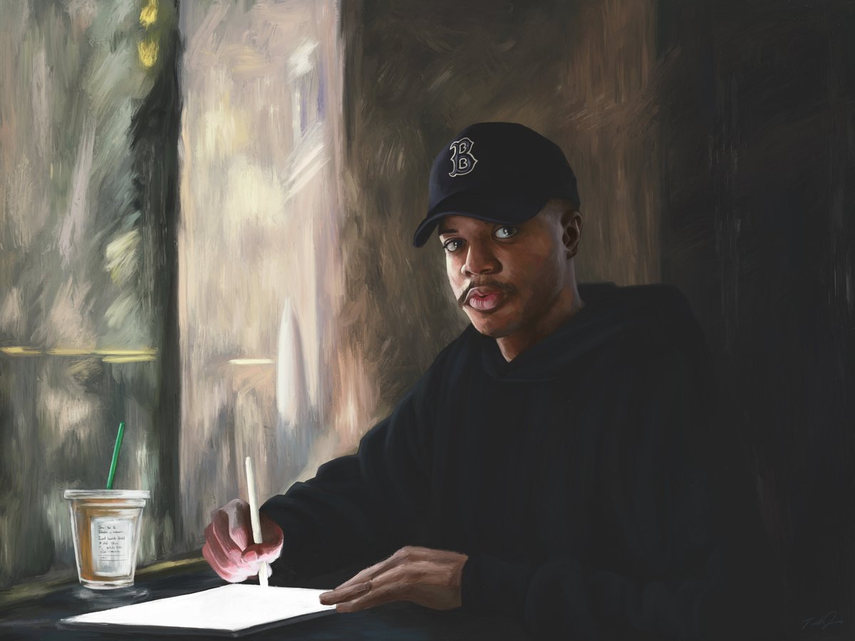 a reimagining of Manet’s “Chez Tortoni” last year i had the opportunity to work alongside @BostonGlobe & 12 other artists to take our spin on the stolen pieces from the infamous Isabella Stewart Gardner heist. i’m grateful i was a part of this awesome opportunity! 🫶🏾