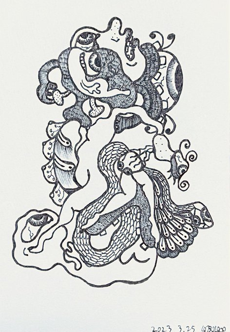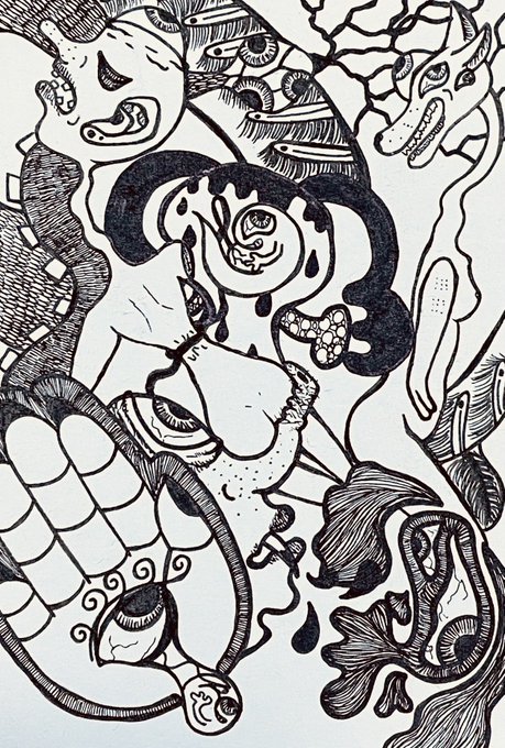 2 6 #2023年自分が選ぶ今年上半期の4枚 最近あんまり大きい絵描いてないけどお気に入りで言うとこれらかな? #ペン画 #アナログイラスト #イラスト 23/06/22 20:42