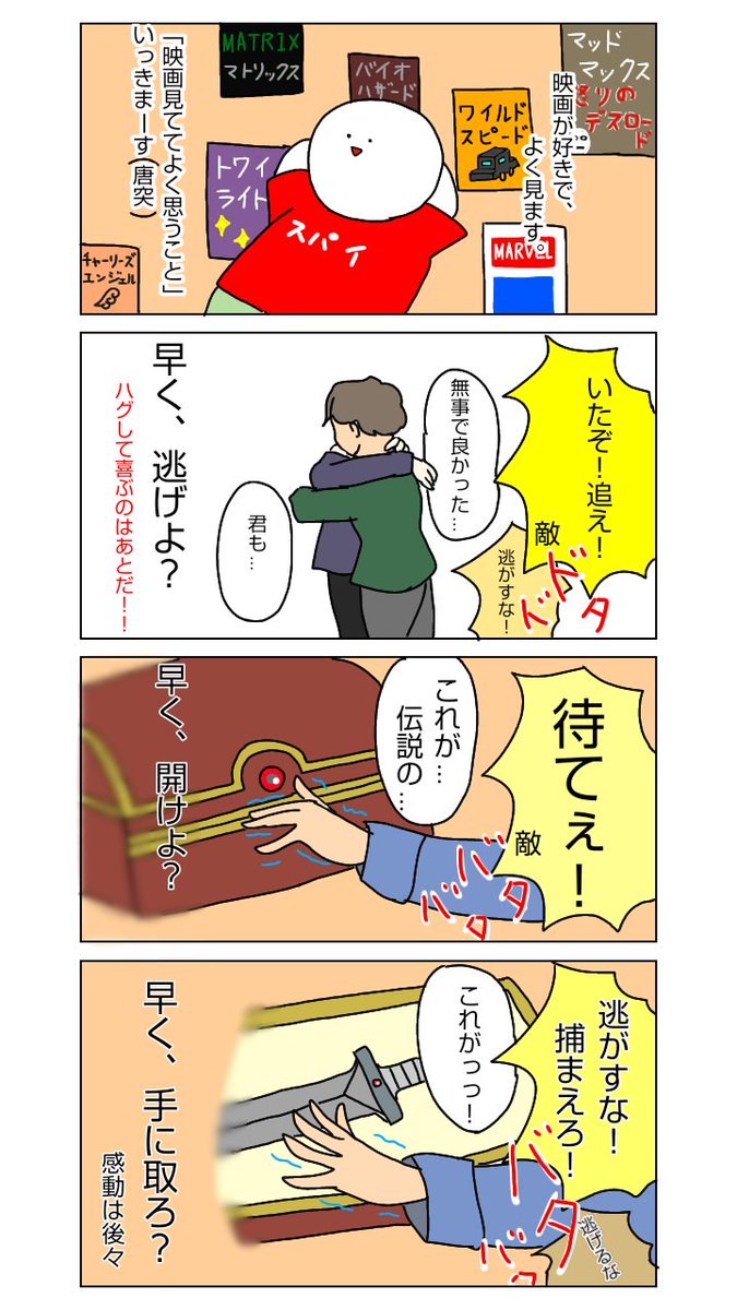 0 5 ゆっくり武器を手に取る的なの見ると 「早く、早く」ってなる #映画 #四コマ漫画 #イラスト 22/08/03 23:51