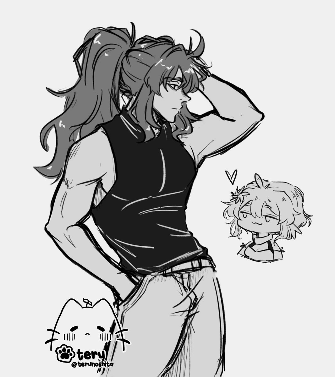 no thoughts, only male boobas 🦭 #genshintober #genshintober2022 #genshinimpact #原神 #fanart #meme #baizhu #alhaitham #eremite