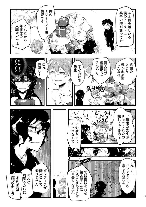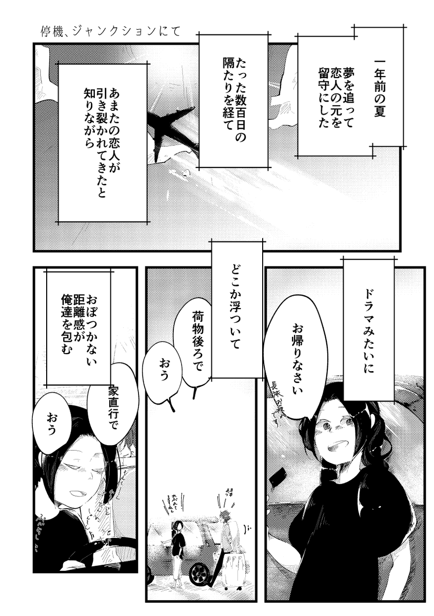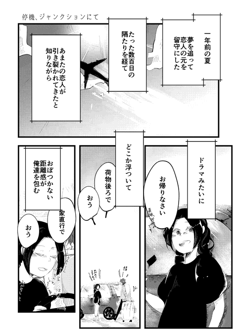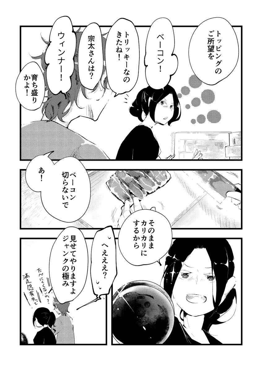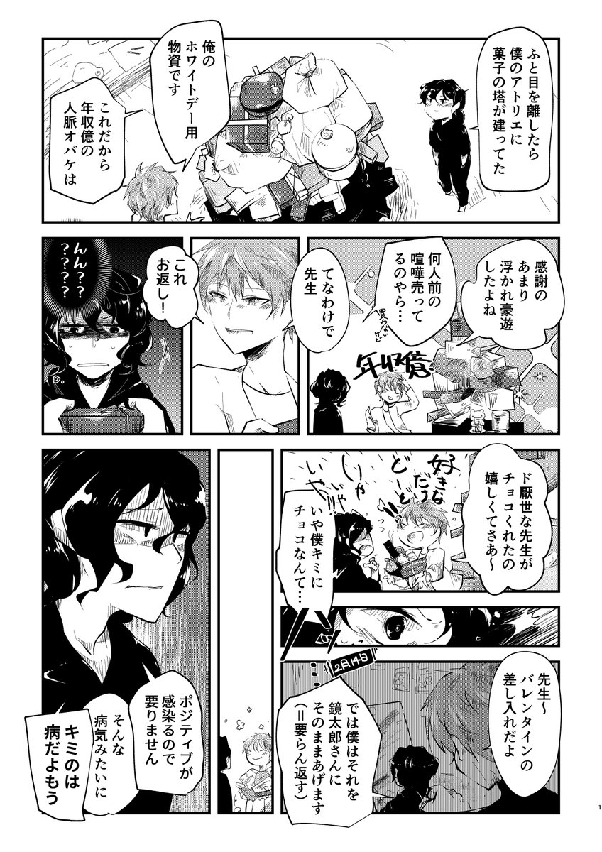 【創作】男子大学生がごはん食べるだけ(1/2) パティシエ修行のためフランスへ旅立った青年と、彼を追いかけて進学してきたのに突然留学でほっぽり出された青年が、一年間の遠距離恋愛期間を経て戻ってきた後のショート漫画です(あらすじ) ※一応BL作品です #漫画が読めるハッシュタグ