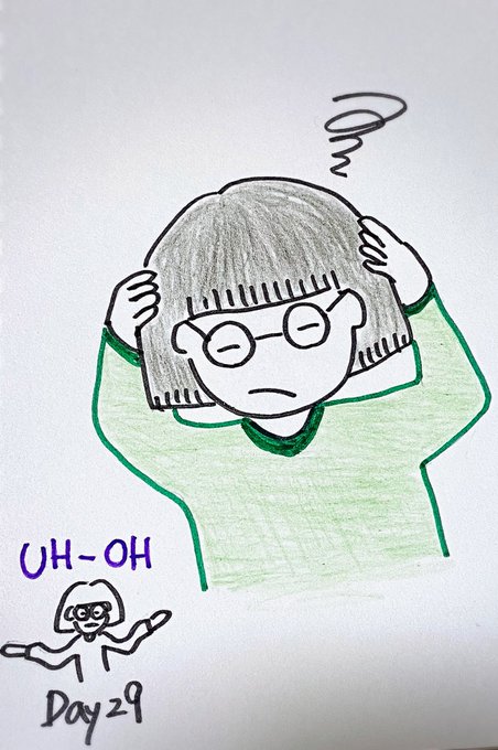 0 1 Day29 UH-OH 今回は英語解釈の方で #インクトーバー #inktober #inktober2022 #頭の体操 #リハビリ 22/10/29 07:27
