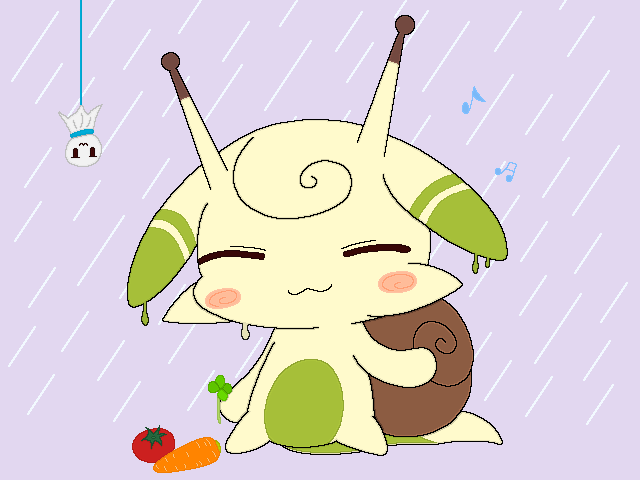 2 16 #まけもあーと ムシムシ族のぴぴる君を描かせていただきました。 雨の日と野菜が大好きということで、人参とトマト、 そしてるてるて坊主も配置しました。 まけもあーとを描くことは、最早私の生きがいの一つになりました。 20/06/28 16:15
