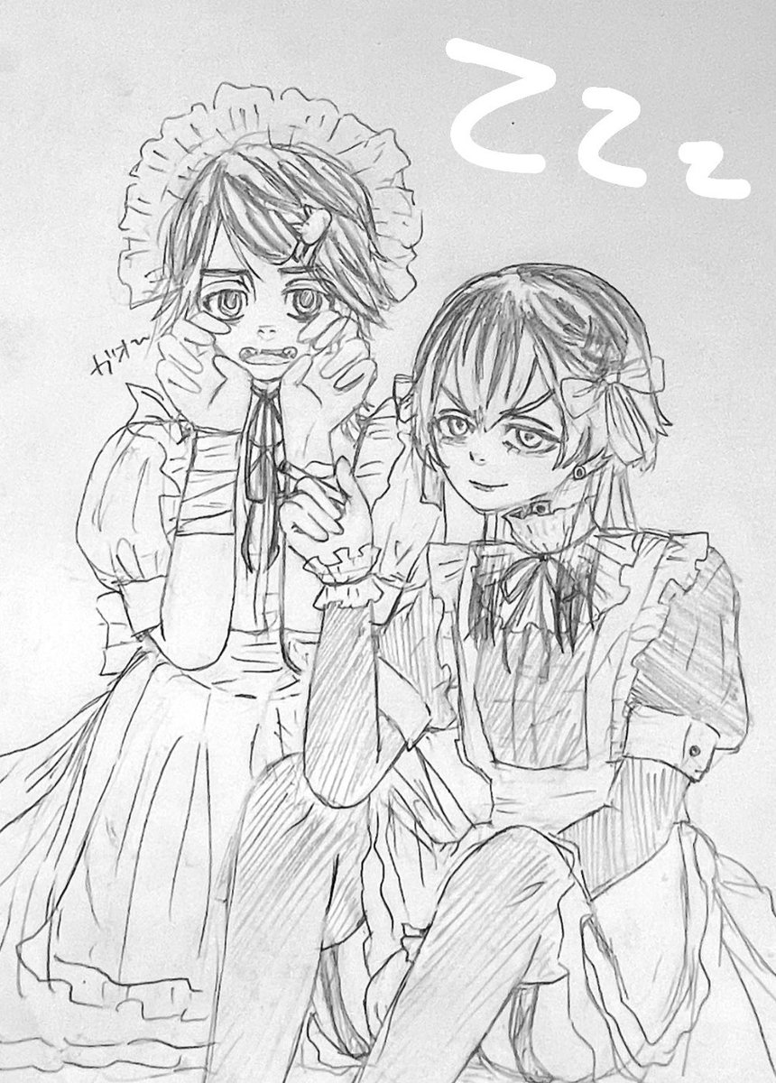 2 27 「指名してくれなきゃスクラップだゾ」 カズくんと竜ちゃんの地雷(?)メイド 落書き〜あとでデジタル化する❤️🔥❤️🔥 #灰谷竜胆 #羽宮一虎 #東卍FA #絵描きさんと繋がりたい 21/10/28 13:13