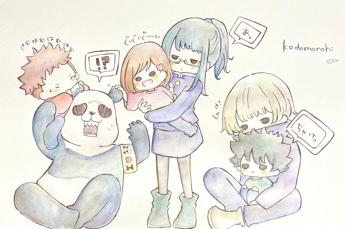 伏黒さんが予想以上のふわもち赤ちゃん肌でぷにぷにがやめられないふたり。 #呪術廻戦ファンアート