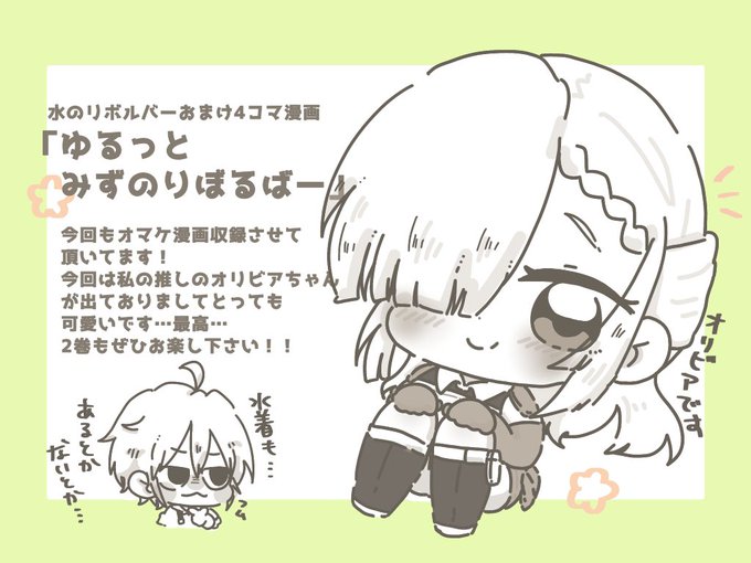 30 44 【🌸お知らせ🌸】 8月17日発売の『水のリボルバー 2巻』に収録されるおまけ漫画、作画担当させて頂いております!佐藤先生のバチバチにかっこいい絵とお話の合間にほんわかをお届けできたら嬉しいです☺️🍵 各通販サイトで予約も受付中です、よろしくお願いします🎉 23/08/10 21:04