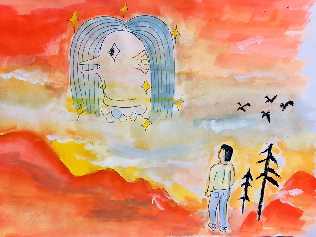 コロナ収束後のアマビエを描きました。 #アマビエ #夕日シリーズ