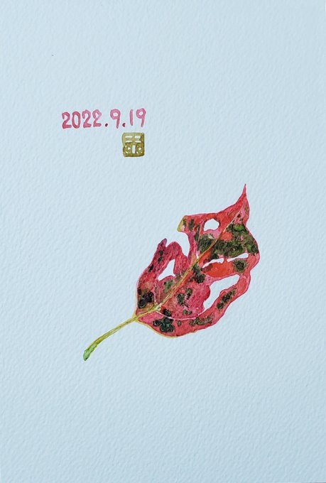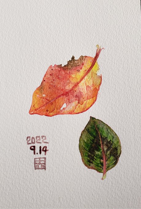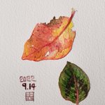 ポリゴナムの葉。最近バタバタしていて、落ち着いて描く時間があまりとれてない。今日もスキマ時間スケッチ。 #水彩 #スケッチ #葉 #紅葉 #小さな絵 #ポリゴナム #ヒメツルソバ #wapercolor #sketch #leaf #autumncolor #littleart #polygonum