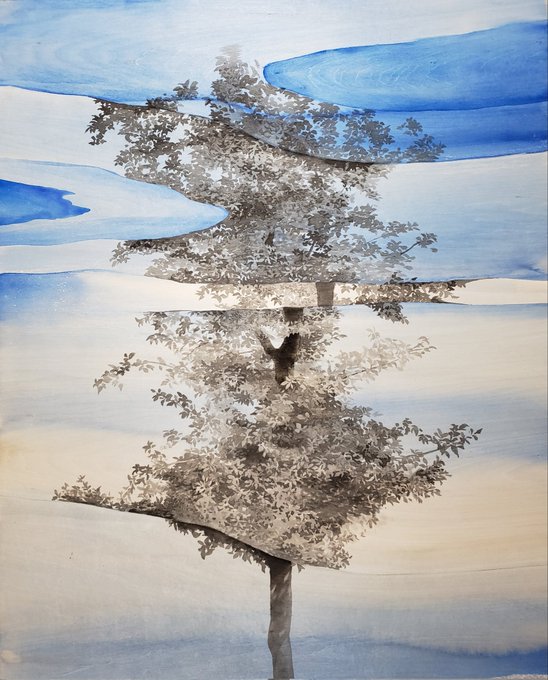 夕暮れの絵、途中。年末のあれこれで、制作の進みが劇的に遅いです。まだまだ道のりは長い··· #絵画制作 #水彩 #墨 #板 #木の絵 #夕暮れ #ブルーモーメント #制作途中 #進捗 #artwork #watercolor #woodpanel #treeart #twilight #bluemoment #workinprogress💪