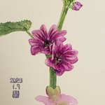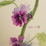 近所の道に咲いてる花。ウスベニアオイ?のようだけど、こんな冬に咲くものなのでしょうか···?最近気になっているのですが、咲き続けています。 #水彩 #花 #花のスケッチ #葵 #ウスベニアオイ #紫の花 #今日の絵 #watercolor #flowersketch #flower #purpleflower #flowerartwork #japaneseartist