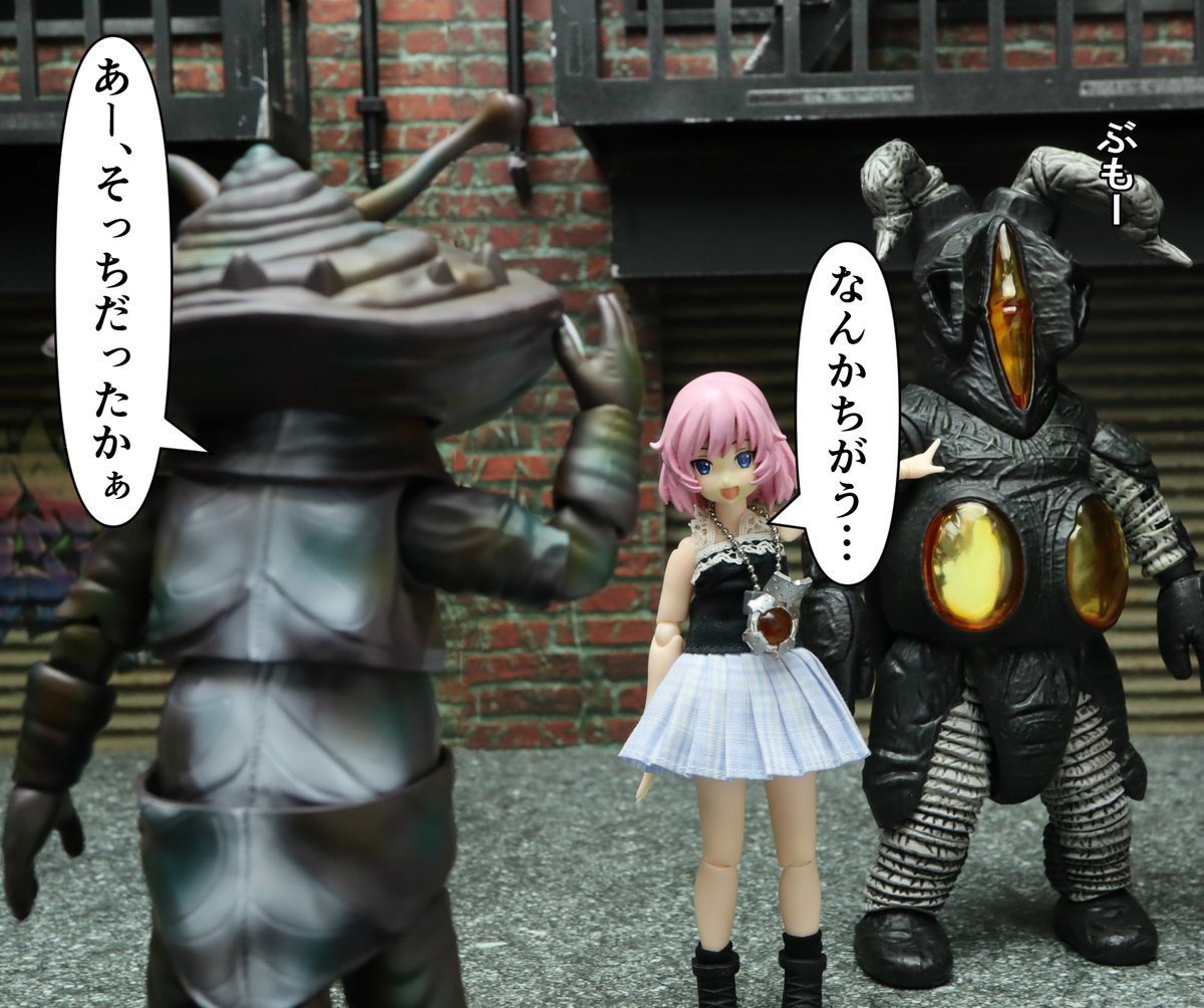 ついでに作った小ネタ。ゼットンはゼットンでもそっちだったらやっぱ残念だと思うの。こんな感じでうちのフィギュアでモンスターファームっぽいことやれたら楽しいかなぁ、と。 #アサルトリリィドール部