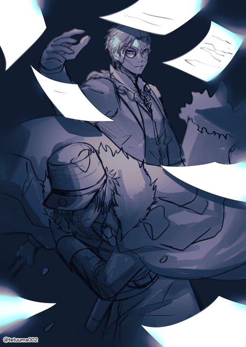 昨日の夜少し描いた落書き 小説家と墓守って最近よく相方とする組み合わせ。 (何も見ないで描いてるからミスってたらごめんw) #さらーと気まぐれにらくがき