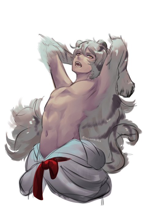 0 9 文字にらめっこの休憩に腹描きたいと思って描いた虎男???w 服めんどくて上半身裸です(º﹃º`)w #さらーと気まぐれにらくがき 22/01/02 21:14