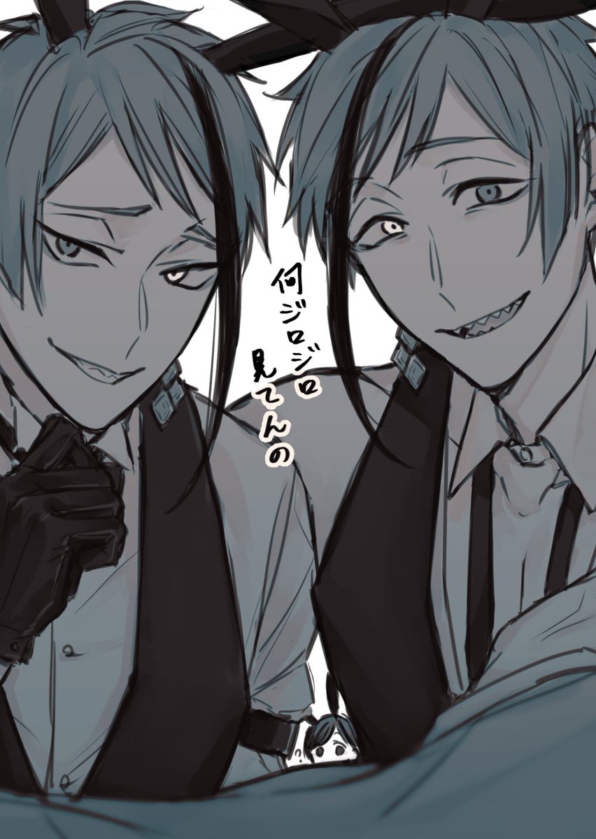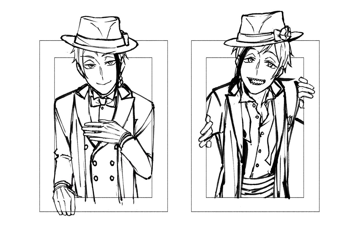 #このタグを見た人は推しの初描きと現在の絵を載せる たぶん四月の頭…?ラフだけど同じく双子監笑 あの時は今より良く描けたのに……一体どう描いたのか教えて四月の私……