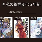 2 4 正直ほぼ変わってないと思ふ 2020の時の塗り今でも好き #私の絵柄変化5年紀 22/04/07 00:32