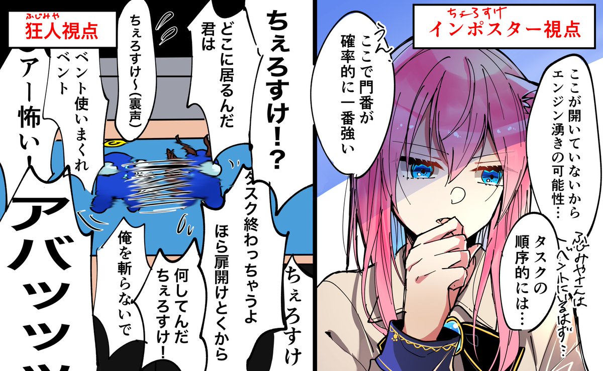 インポスターは勿論、生き残りクルー二人や霊界を含め全ての視点の中で一番焦り怯えていた狂人めちゃくちゃ面白かったな #ちぇらすと #ふじみやまで届け
