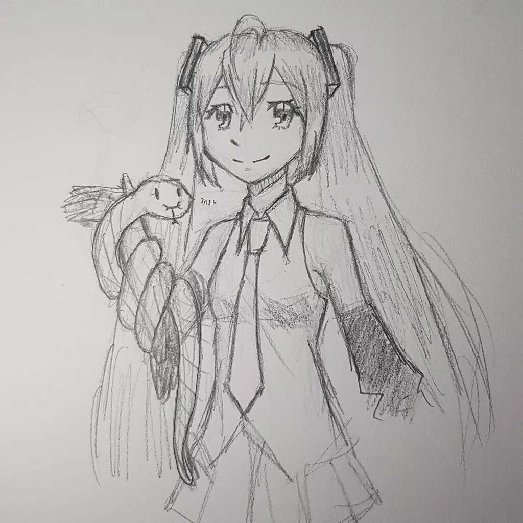 Day 67/inktober day 10 (pick) Not very happy with this one but deadline #hatsunemiku #vocaloid #drawings #artwork #mikuhatsune #anime #artist #miku #illustrator #miku100 #初音ミク #inktober #inktober2021