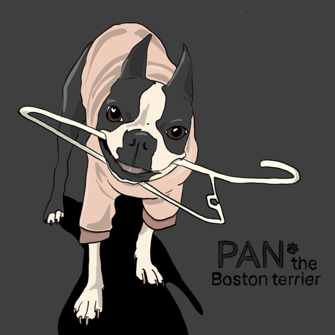 ハンガー泥棒! 悪い顔してるパンちゃん。 #Bostonterrier #ボストンテリア #ボステリ #イラスト #犬 #art #いぬのいる暮らし
