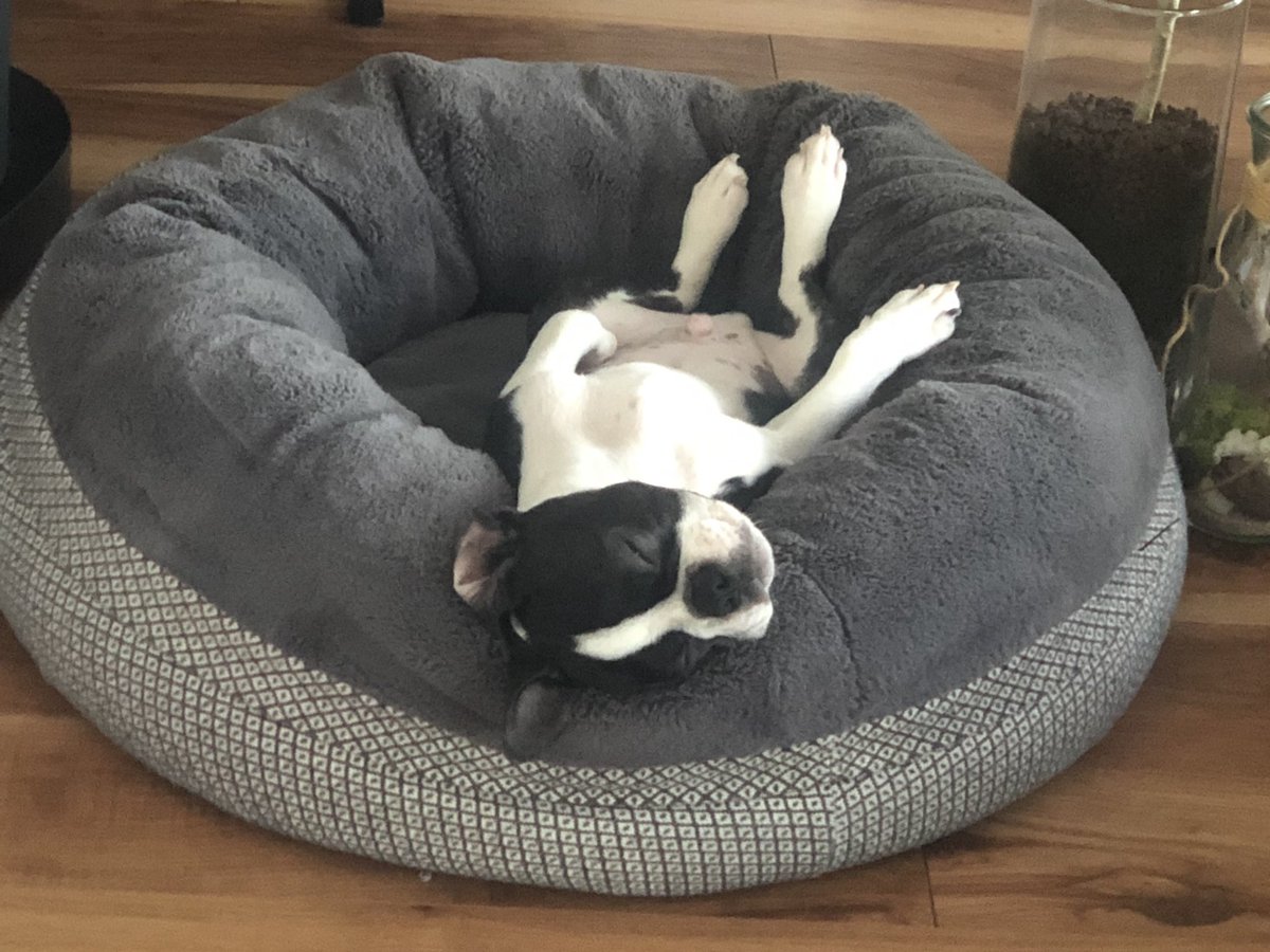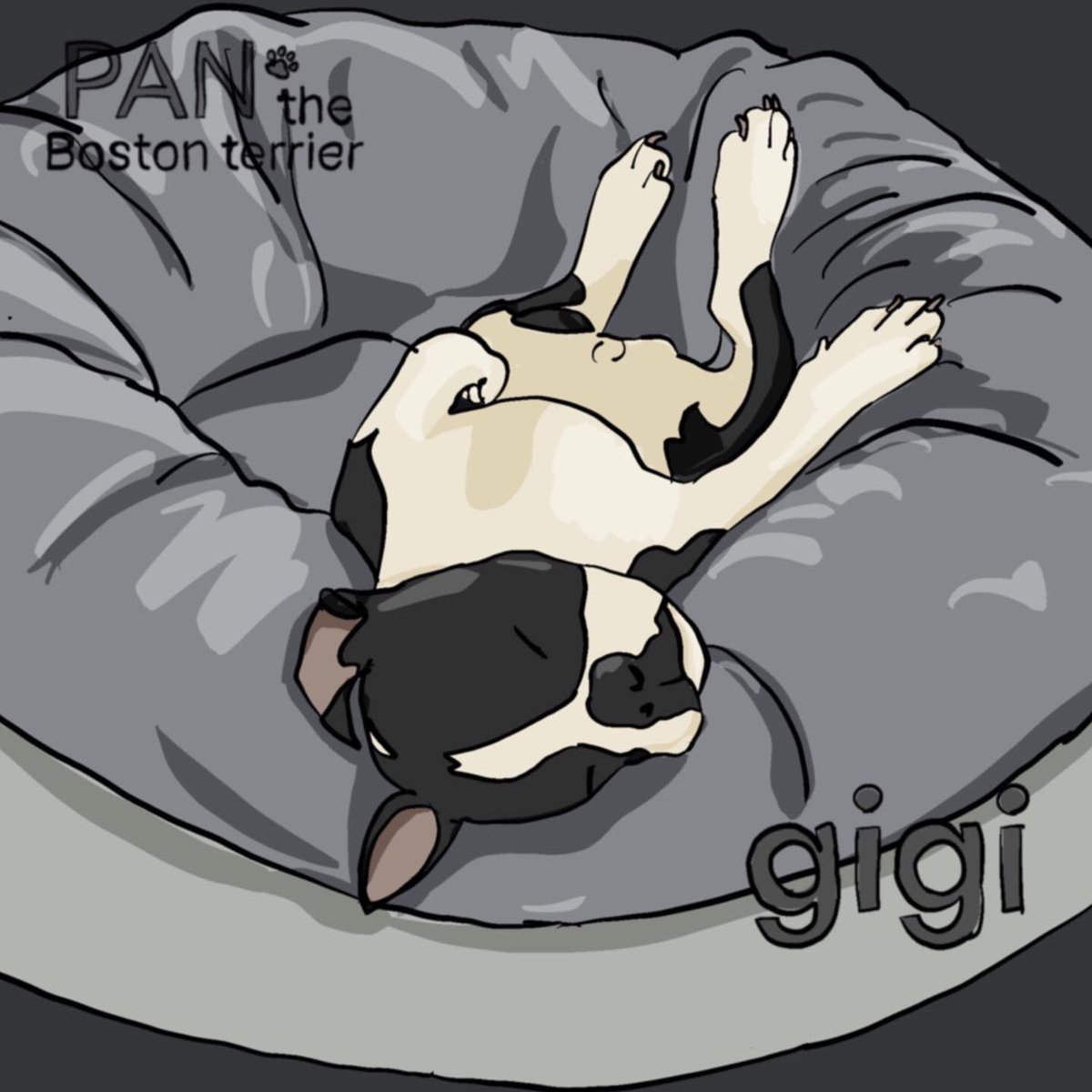 ゴロゴロ、ジジくん #Bostonterrier #ボストンテリア #ボステリ #イラスト #犬 #art #いぬのいる暮らし #フレンチトン #アート #どうぶつ