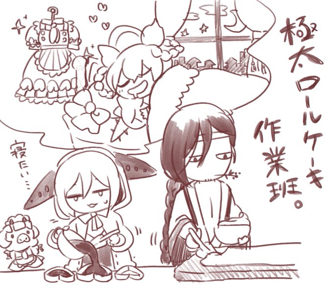 描いてて思ったけど、完成までダゴンちゃん寝るわけないんだな。起きてて作業台に張り付いてお手伝いつまみ食いなんだよな。