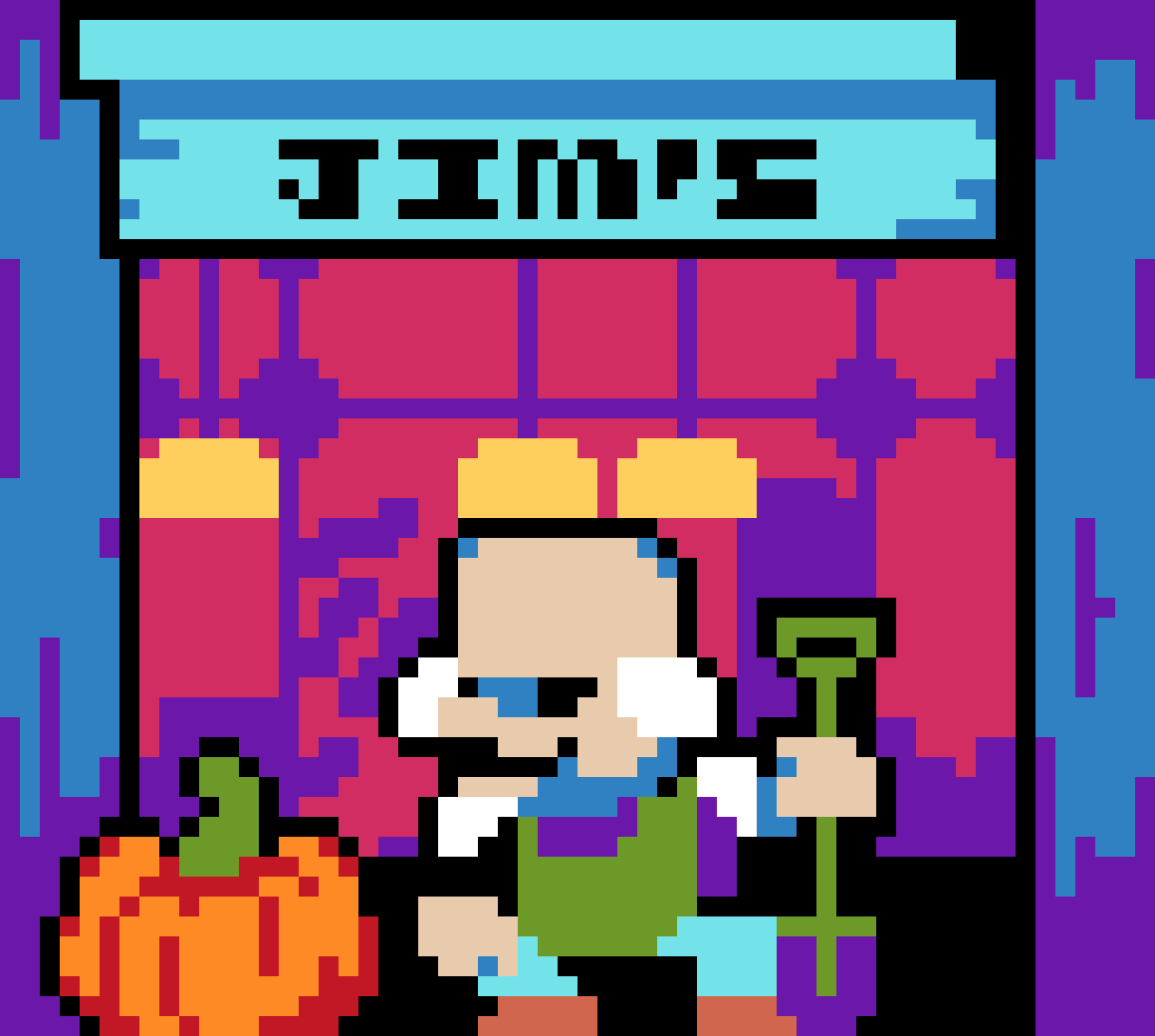 Old farmer Jim at his #storefront with his prized pumpkin. Groceries, anyone? @Pixel_Dailies #pixel_dailies #pixelart