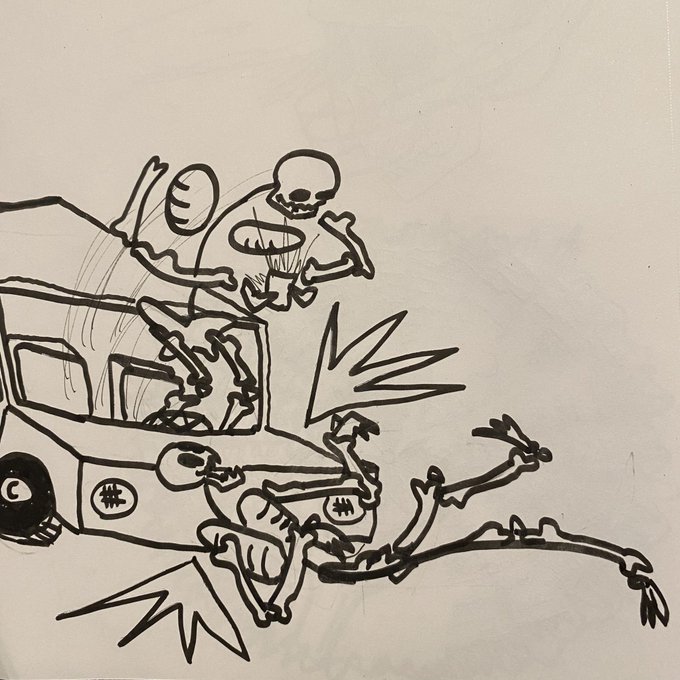 #inktober day seventeen: COLLIDE Kinda just wanted to see how quickly but efficiently I could draw some #wackyskeletons so, enjoy! #inktober2021 #inktober2021day17 Get #wackyskeletons trending