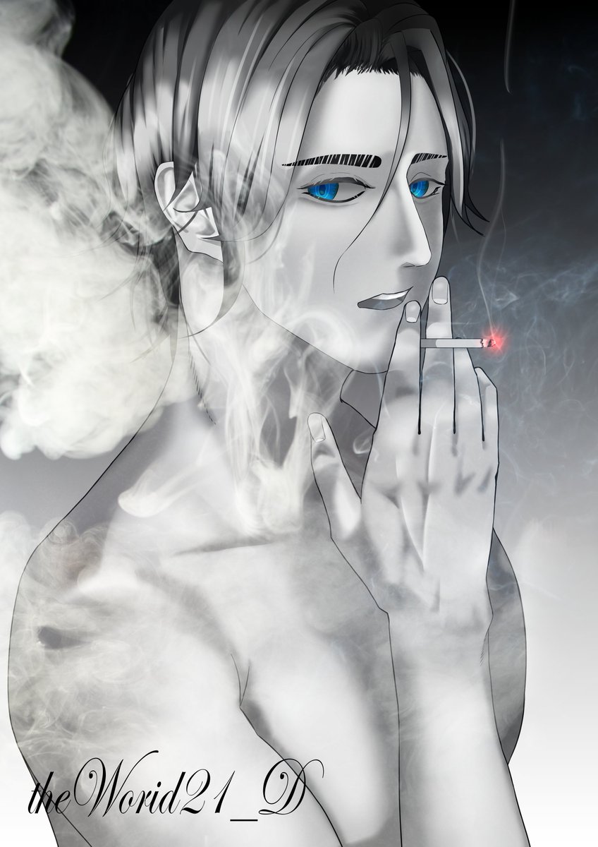 久々に男描いたら描き方忘れてたけどかっこよく描けました!!!みんな見てくれ~!!! 個人的にはモノクロのやつバカかっこいいけど、せっかくカラーも塗ったのでお見せしたい!!!!! #お絵描きさんと繋がりたい