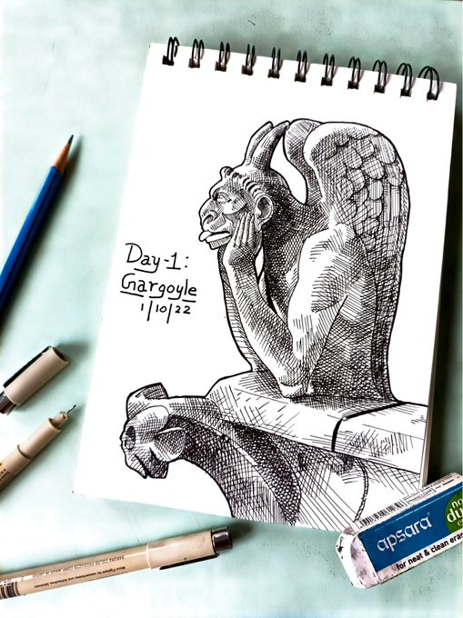 0 4 Day 1: GARGOYLE #inktober #inktober2022 #inktober2022gargoyle 22/10/02 00:43