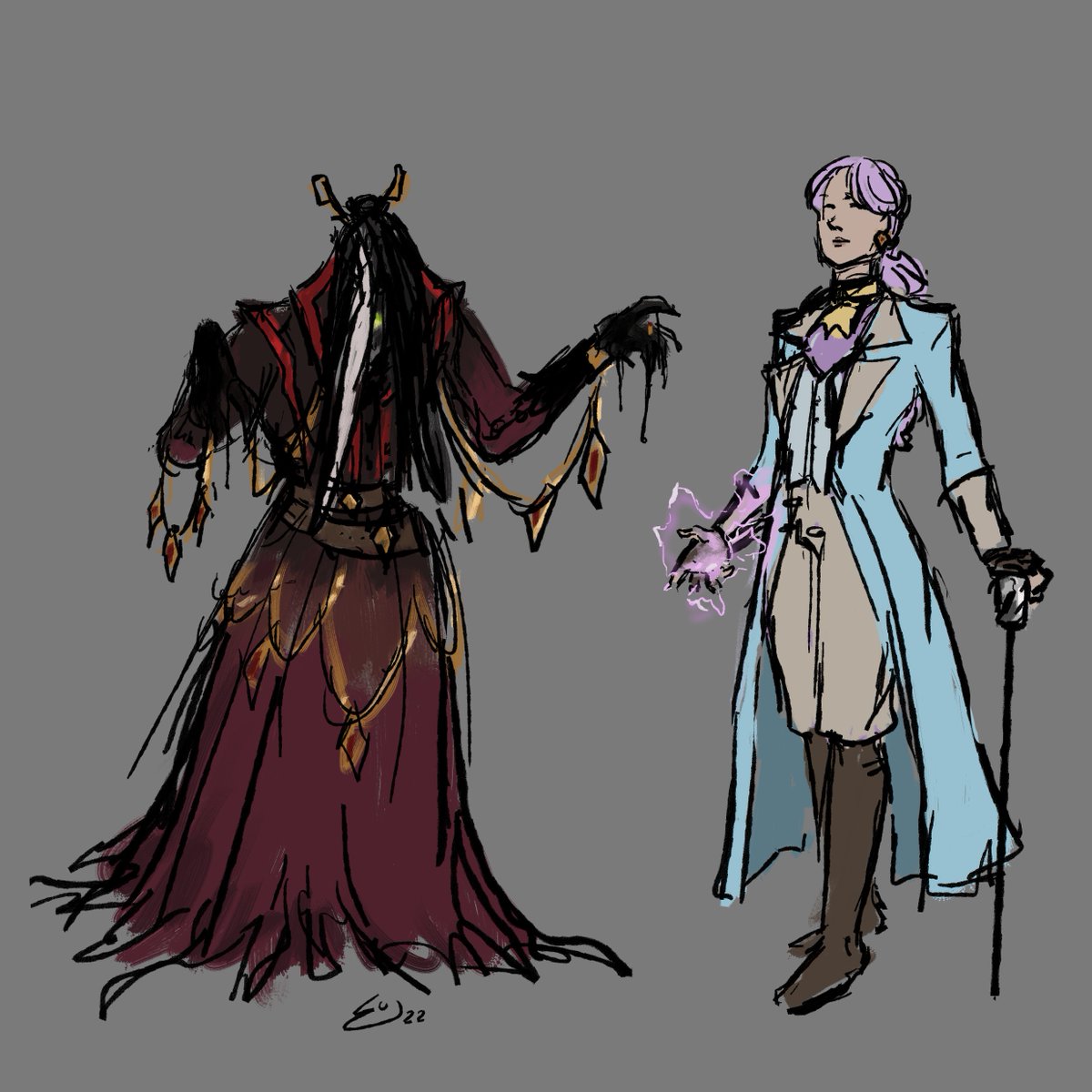 Very quick sketch of an idea I had the other day of "what if Laudna went full Delilah puppet warlock" and then a matching Imogen requested by my friend @MissKoreVG #criticalrole #criticalrolefanart #CriticalRoleArt #laudna #imogen