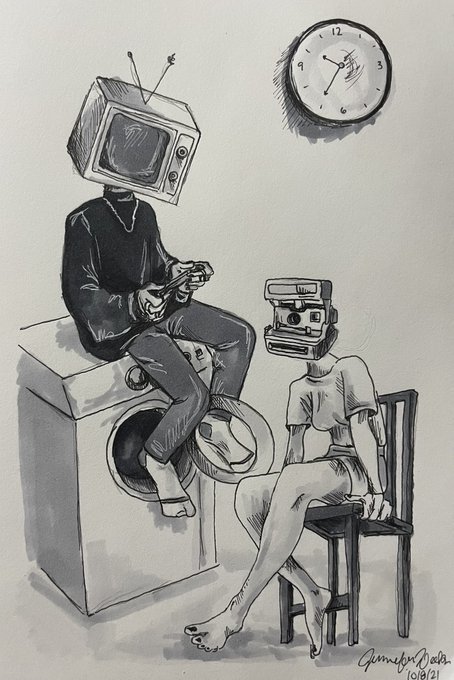 Inktober day 12 “Stuck” Self portrait “artist’s block” #inktober #inktoberday12 #inktober2021 #inktoberstuck