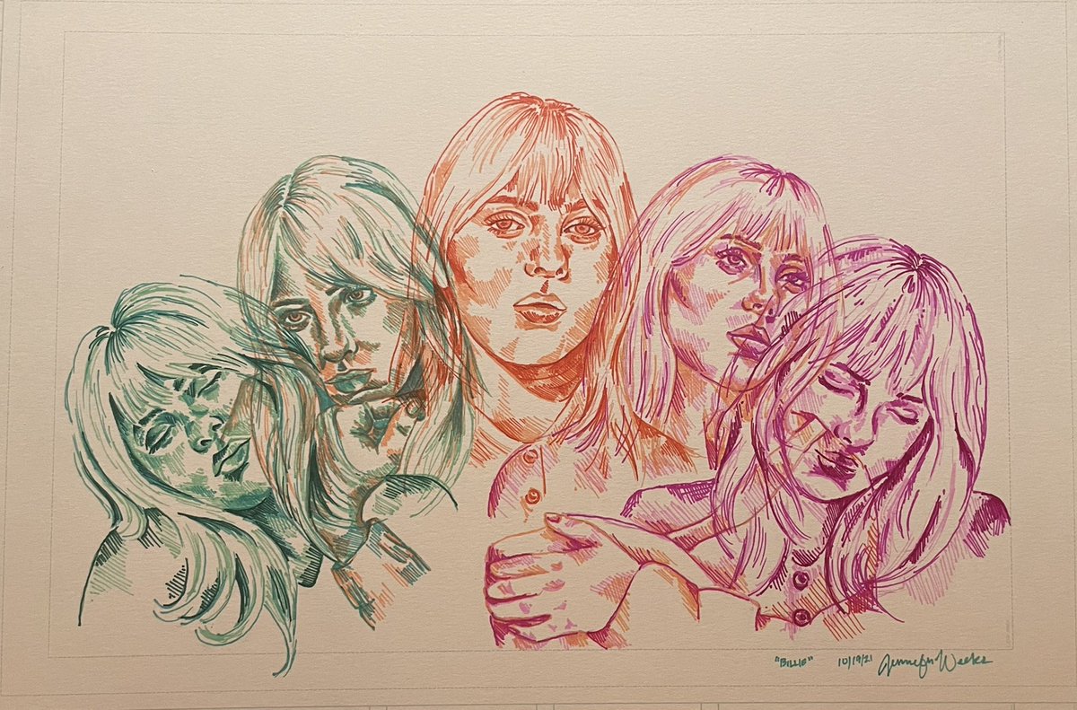 Inktober day 19 “Loop” This drawing follows the sleep cycle. One minute she is asleep and then she slowly wakes up and then falls back asleep. Hence the “loop”. #inktober #inktober2021 #inktoberday19 #billie #BillieEilish